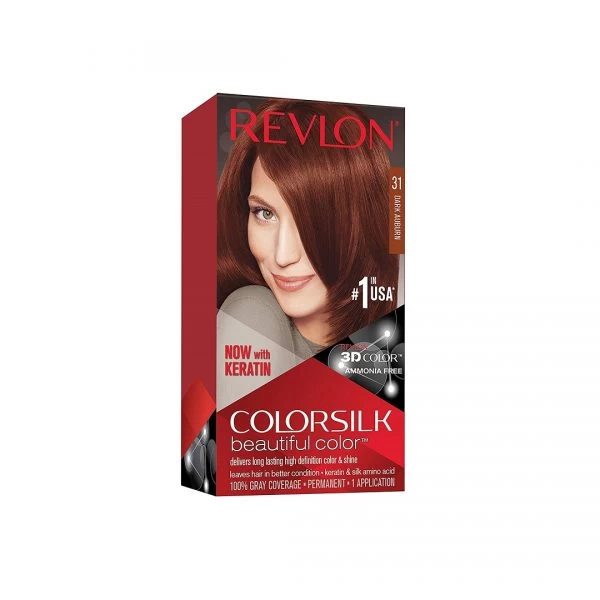 Product Description Of Revlon Color silk Beautiful Color, Permanent Hair Dye with Keratin, 100% Gray Coverage Ammonia Free 31 Dark Auburn