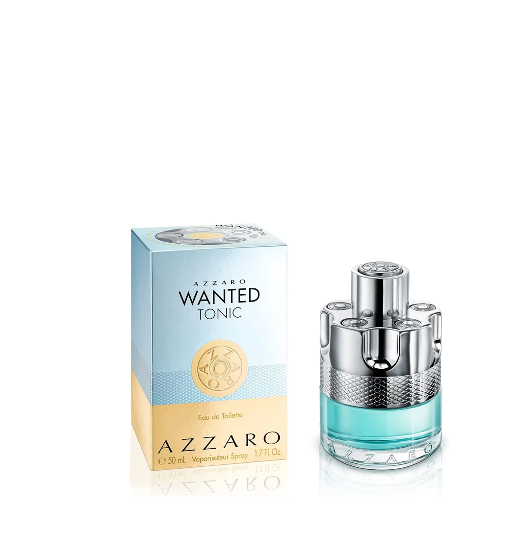 The Azzaro Wanted Tonic man is fresh. He always seeks new experiences and to push his limits casually and elegantly. Its woody, aquatic and spicy notes creates a wave of invigorating freshness by combining lime, ginger, and patchouli notes. Wanted Tonic mens cologne comes in a barrel-shaped clear finish bottle giving a glimpse of the fragrance's sparkling blue liquid, crowned with a glittering chrome cylinder. To use, spray your fragrance 8 inches away from your body and for long-lasting intensity and impression, spray your fragrance on your pulse points: the neck, torso, and wrists. Wanted Tonic Eau de Toilette for men includes one 1.7 Fl Oz bottle of cologne.
