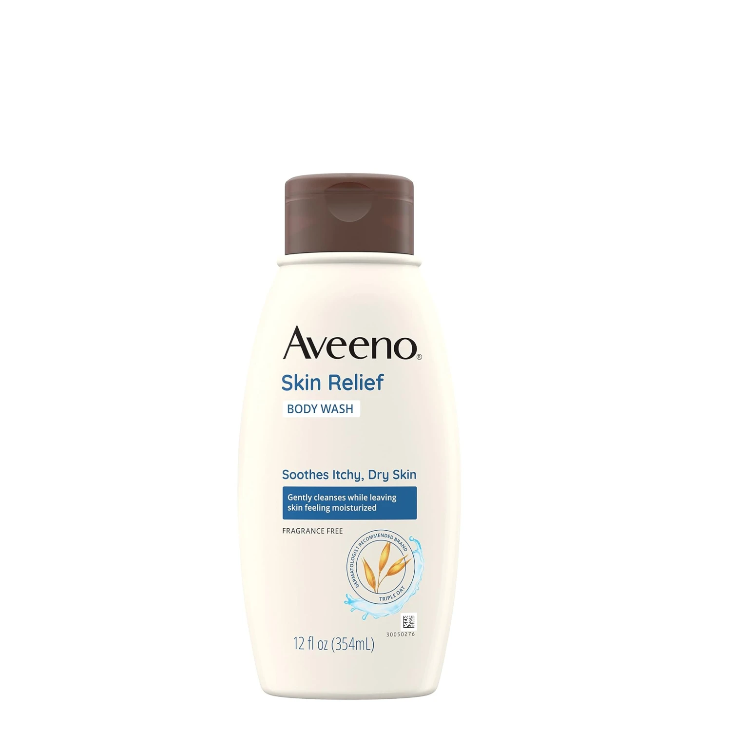 Gently cleanse while leaving itchy, dry skin feeling moisturized with Aveeno Skin Relief Fragrance-Free Body Wash. This sulfate free body wash is made with a soothing Triple Oat formula and formulated for sensitive skin. Aveeno Skin Relief Body Wash gently, but effectively cleanses while leaving itchy, dry skin feeling soothed and feeling moisturized. 91% of users agreed the skin relief body wash gently cleansed their skin without drying it out. From the dermatologist recommended brand for over 70 years, this body wash is allergy-tested, free of fragrances, sulfates, parabens, dyes, and soaps, and is suitable for daily use. To use, squeeze body wash onto a wet pouf, washcloth, or hands. Work into a rich, creamy lather, then rinse. Use the creamy body wash as a rich shave gel for silky, smooth legs. Follow with Aveeno Skin Relief Moisturizing Lotion to lock in moisture for 24 hours as a part of your daily skincare routine.