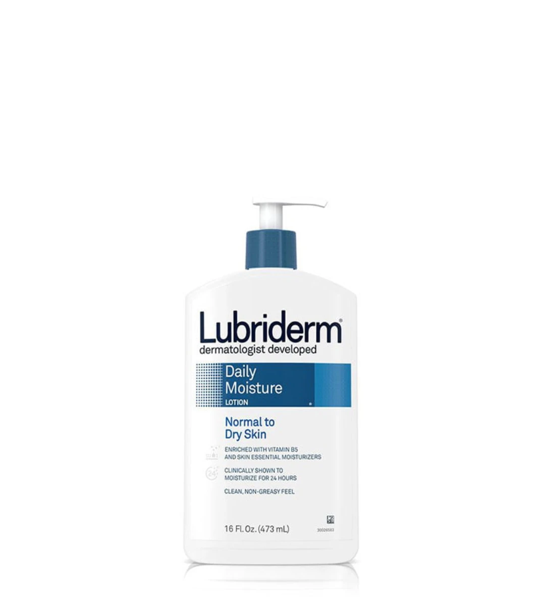 Pamper your dry skin with Lubriderm Daily Moisture Lotion Normal to Dry Skin. Whether your skin is rough, dry, and chapped from cold weather or recovering from sunburn, this normal-to-dry-skin moisturizer will soothe your body and restore your epidermis to its natural balance. Infused with vitamin B5 and a delicate blend of ingredients, this Non-Greasy Moisturizer (16 fl oz) leaves your skin feeling soft, smooth, and supple. Lubriderm Daily Moisture is perfect to use after taking a shower at home, at the gym, or when traveling.